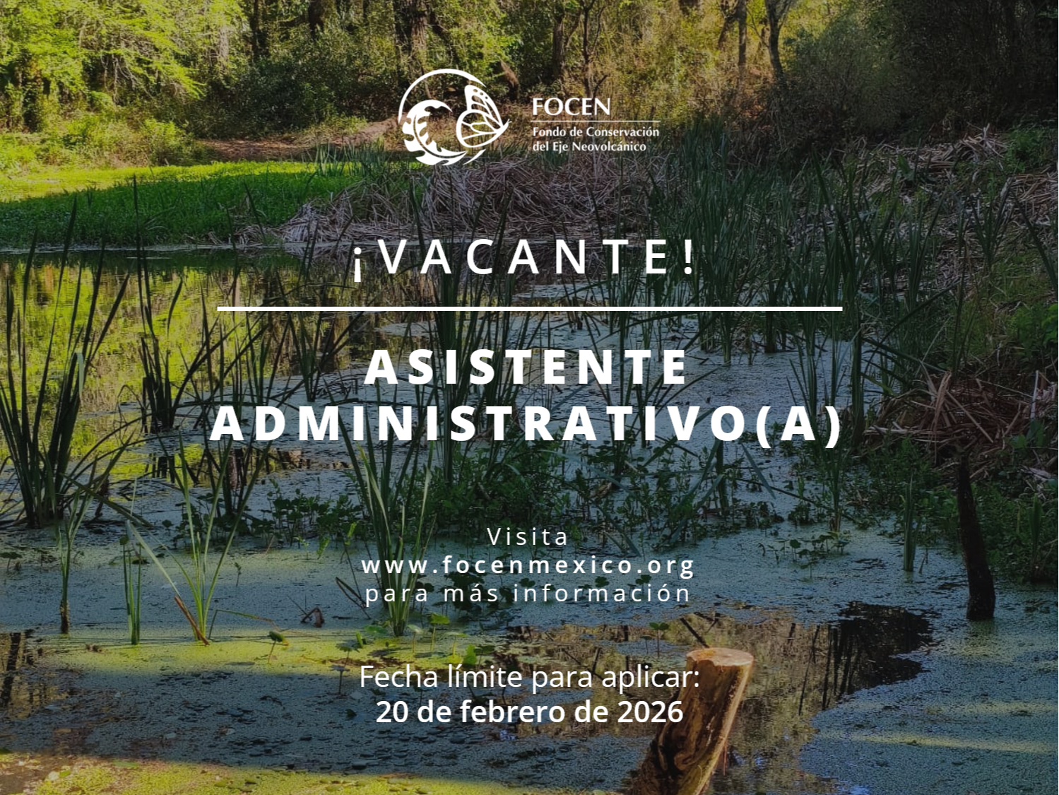 El objetivo: Asistir a la coordinación administrativa y contable en el desarrollo de las actividades operativas que contribuyan a la ejecución de los proyectos que FOCEN opera en la región del Eje Neovolcánico.